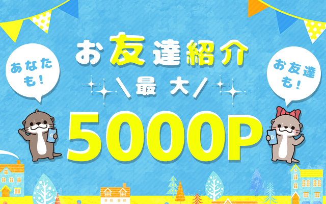 紹介URLから登録して、翌々月末までに5000P以上獲得で
